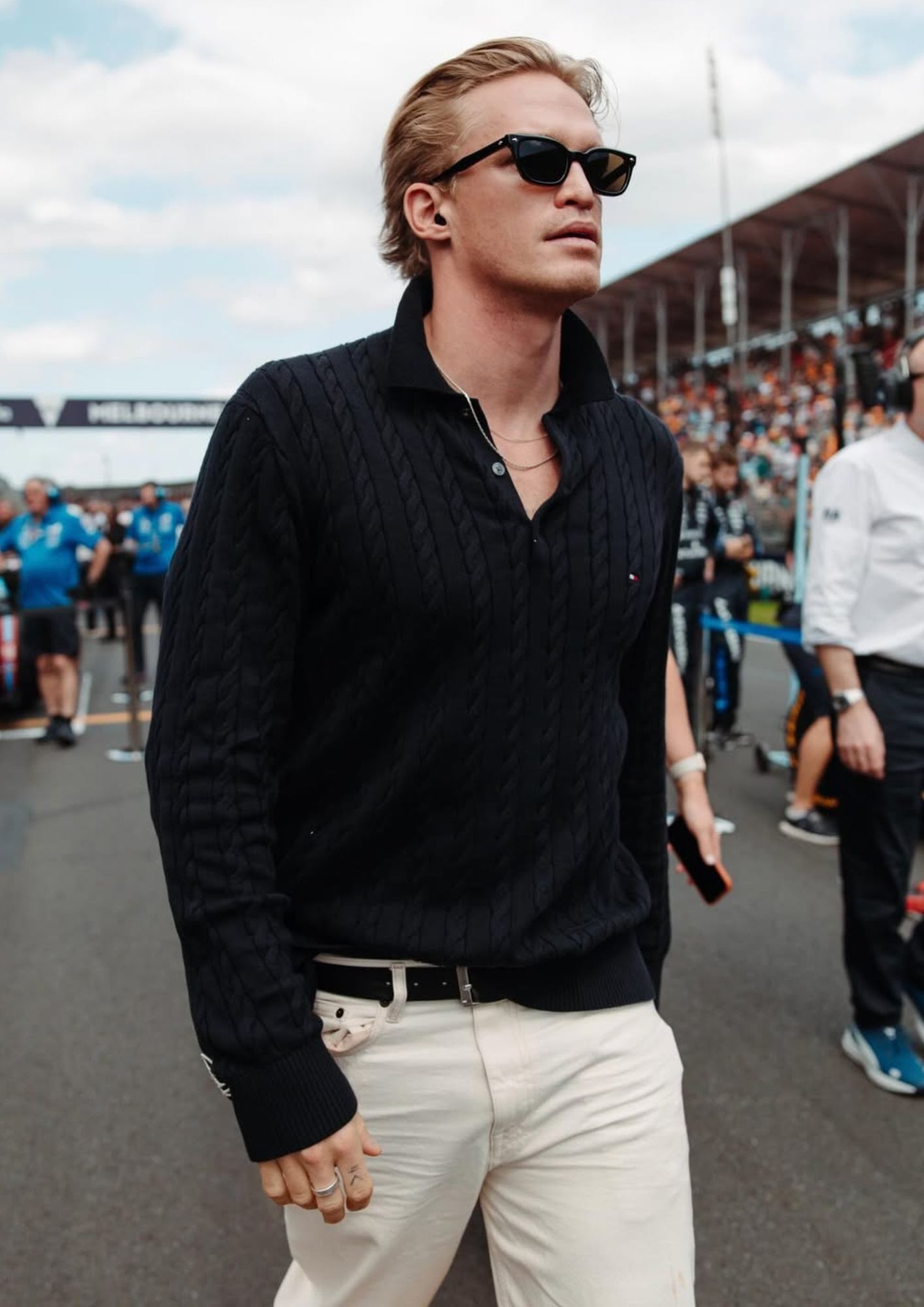 Materiais como linho, tricô e couro adicionam profundidade e enriquecem produções com discrição e sofisticação. A mistura de texturas cria interesse visual e transforma até os looks mais simples em composições mais elaboradas.